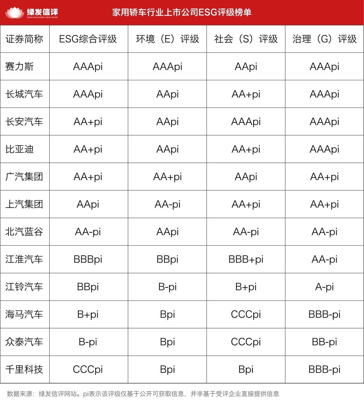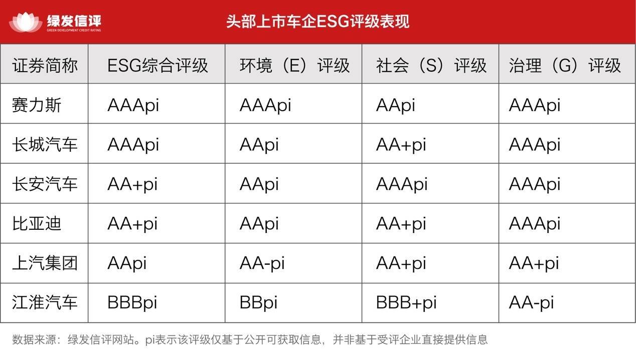 中国财富网讯r近日正规网上股票配资平台,海南绿色发展信用评级有限公司(以下简称“绿发信评”)在其网站发布A股上市公司ESG主动评级结果。评级结果显示,6家市值千亿以上的家用轿车整车生产企业ESG表现处于行业内第一梯队,其中赛力斯和长城汽车获得AAApi评级;长安汽车和比亚迪为AA+pi;上汽集团获得AApi评级;江淮汽车获得BBBpi评级,被其他头部车企拉开差距。
